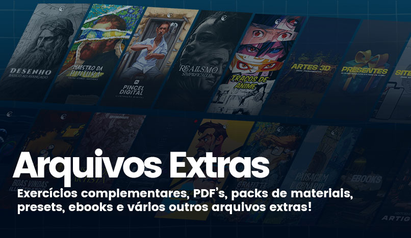 Por último, mas não menos importante, nossa equipe preparou alguns materiais de apoioque irão auxiliar na sua jornada artística. São funções, ferramentas, conteúdos e arquivos extras que separamos para nossos alunos ao longo do tempo!
