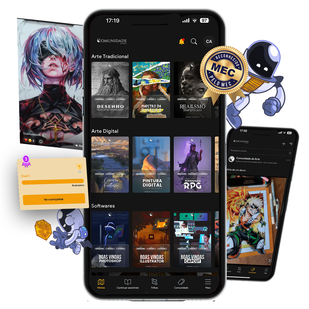 Nessa categoria de cursos da Comu, você vai aprender do básico ao avançado as melhores técnicas para fazer arte de verdade só que no meio digital.